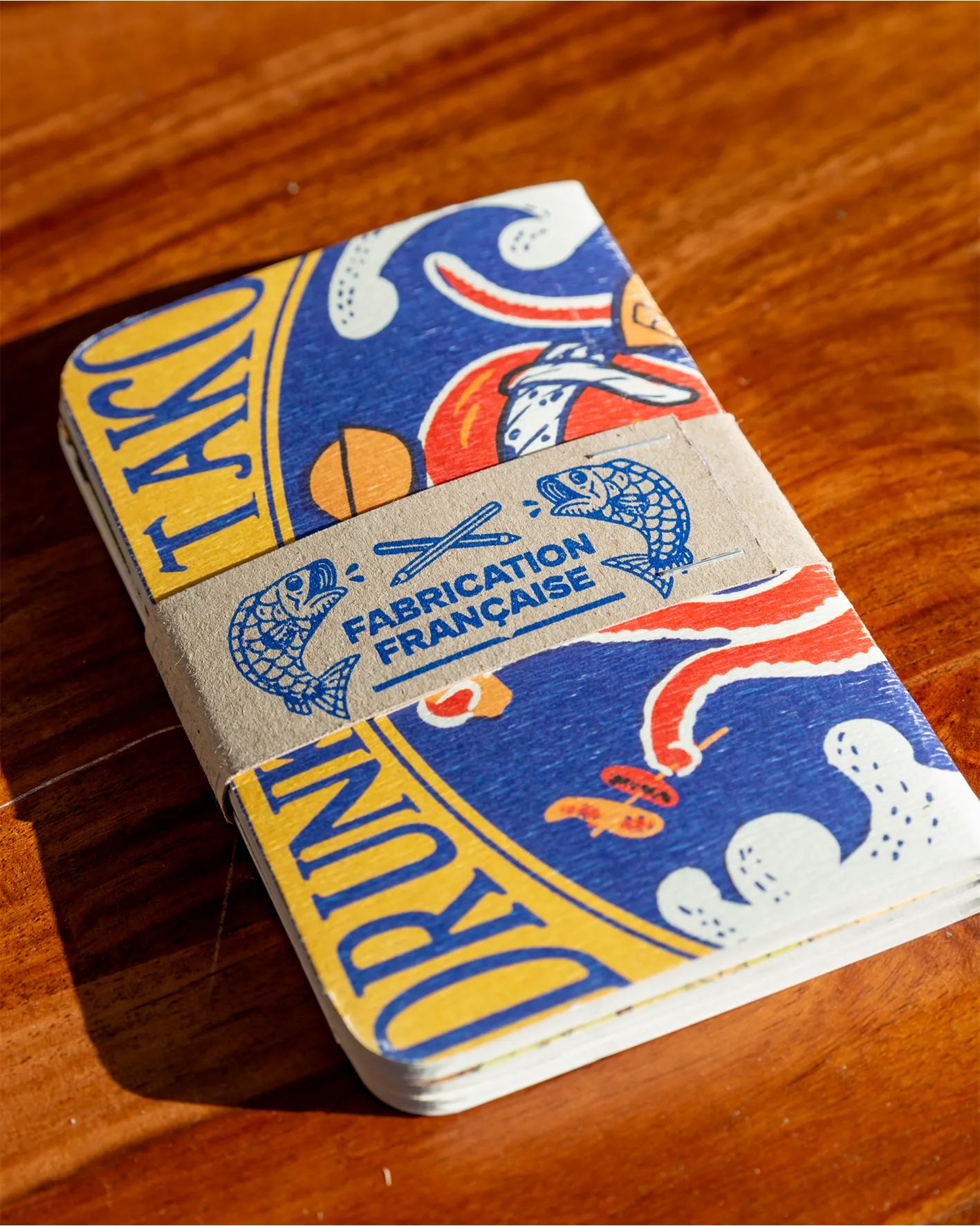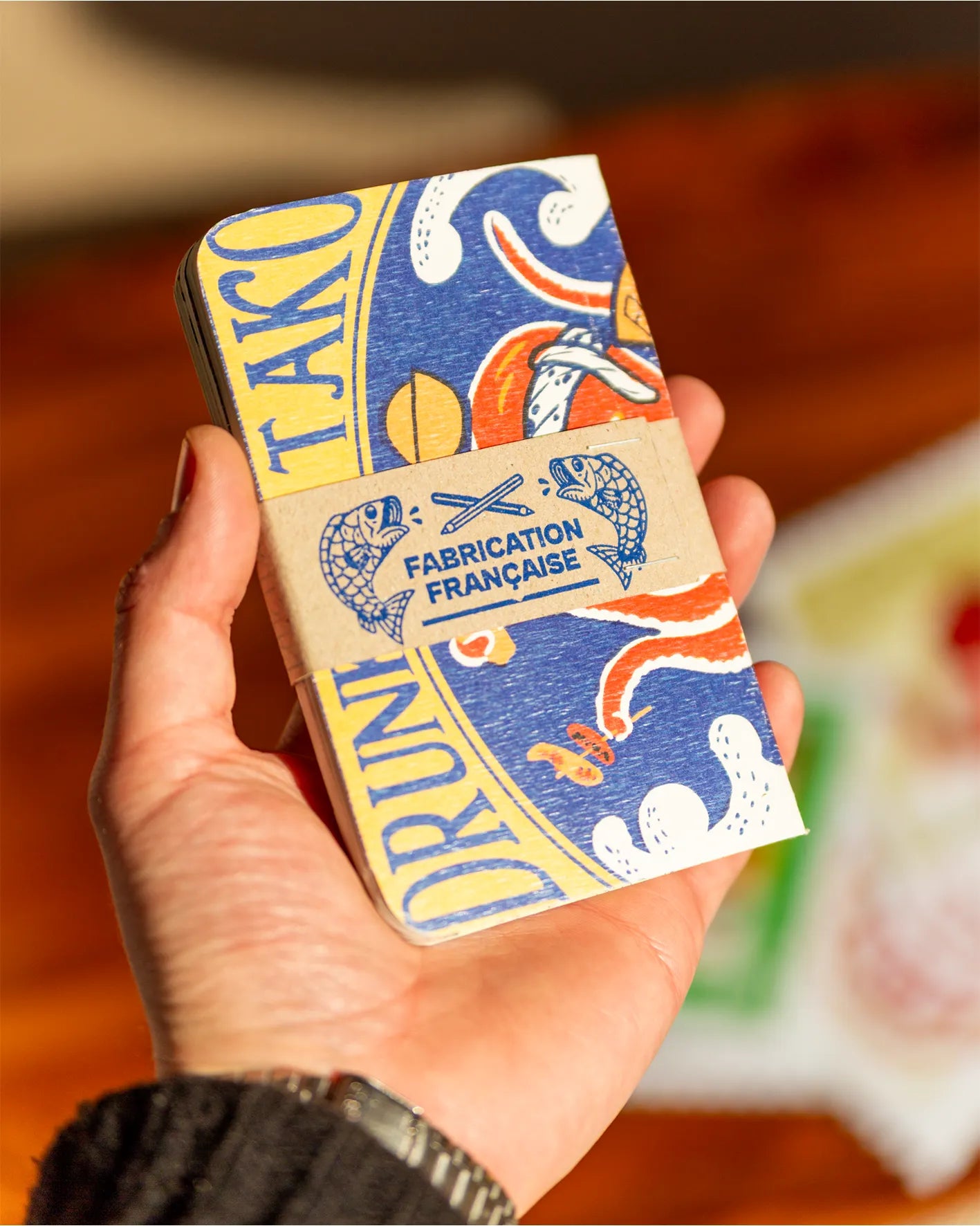 Vendu par lot de 3, format poche 9x14 cm, avec 48 pages de papier grande qualité 100% recyclé (80g/m2, certifié blue angel ISO14001 eco label européen) pour noter tes idées, tes croquis ou ta liste de courses que tu perdras sûrement. Fabriqués à la main dans notre atelier de Caen, ce sont de véritables petits objets de papeterie artisanale !