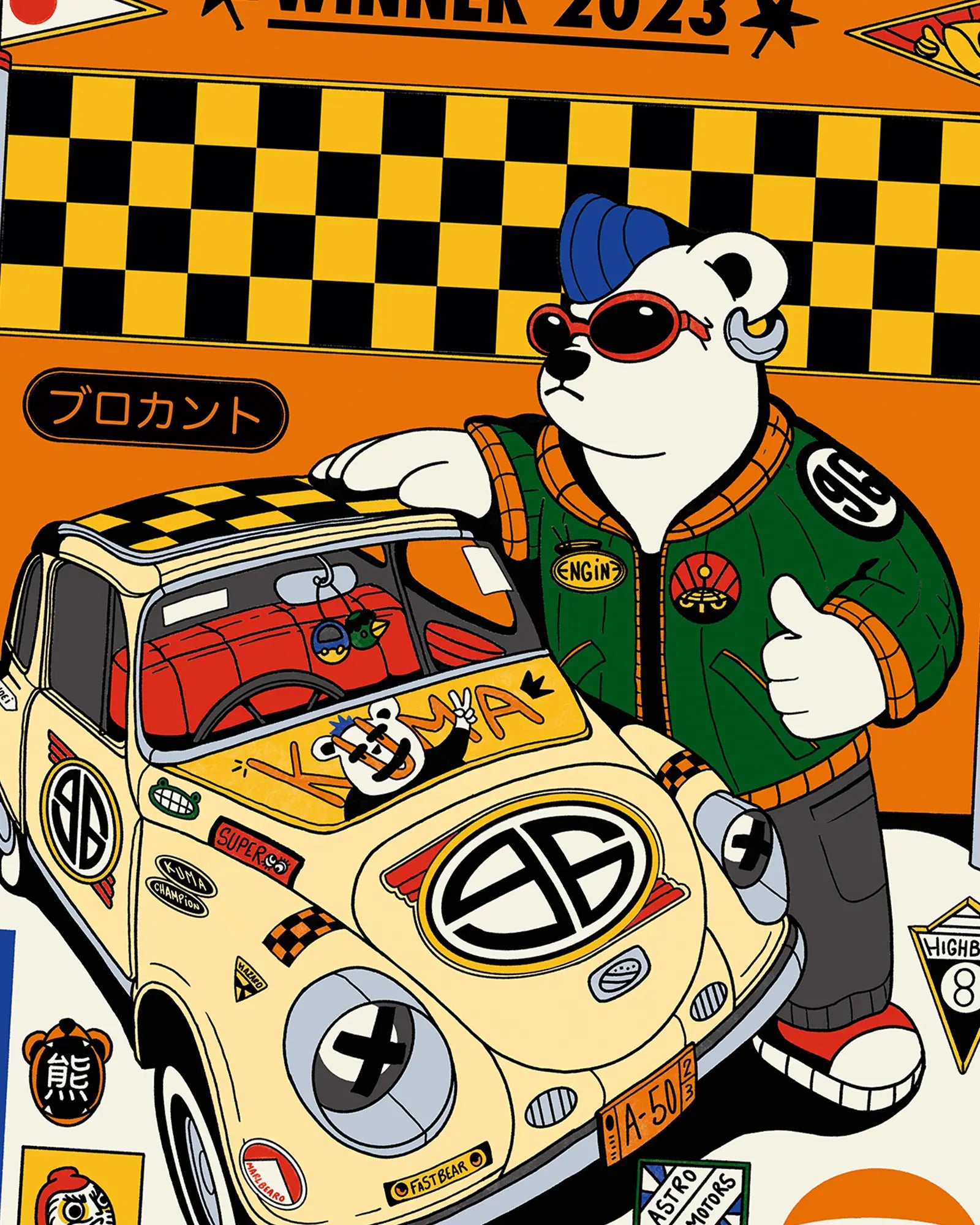 Kuma est la pilote de course la plus expérimentée de Takayama. Avec sa fidèle Subearu d’époque et son célèbre numéro 96 elle a remportée la Momiji Cup 5 fois d’affilée !C’est pour célébrer cet exploit que la ville a commandée une affiche spéciale pour l’occasion, que voici.